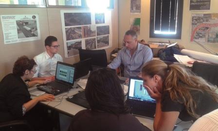 1- un momento del laboratorio di progettazione che vede impegnati gli architetti Alessandra .Brancatelli Giuliana .Staiti Calogero Brancaelli, Alberto D’angelo, Diego Cuccuzzella e l’ing. Marco. Forzato